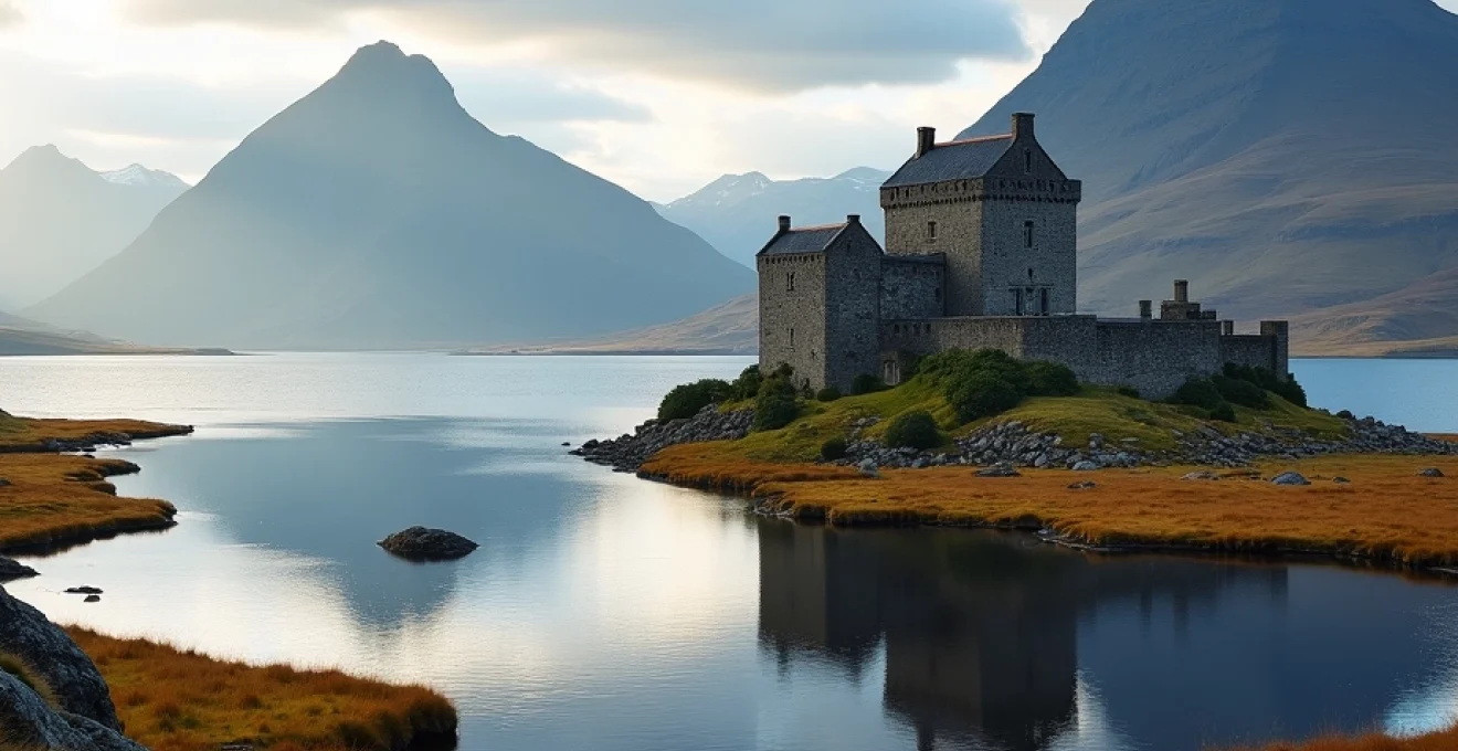 Perched on a small tidal island where three sea lochs meet, Eilean Donan Castle is arguably Scotland’s most photographed castle. This 13th-century fortress, restored in the early 20th century, epitomises the romantic image of a Highland castle. Its strategic location made it a key defensive stronghold for centuries, particularly during the Jacobite risings.