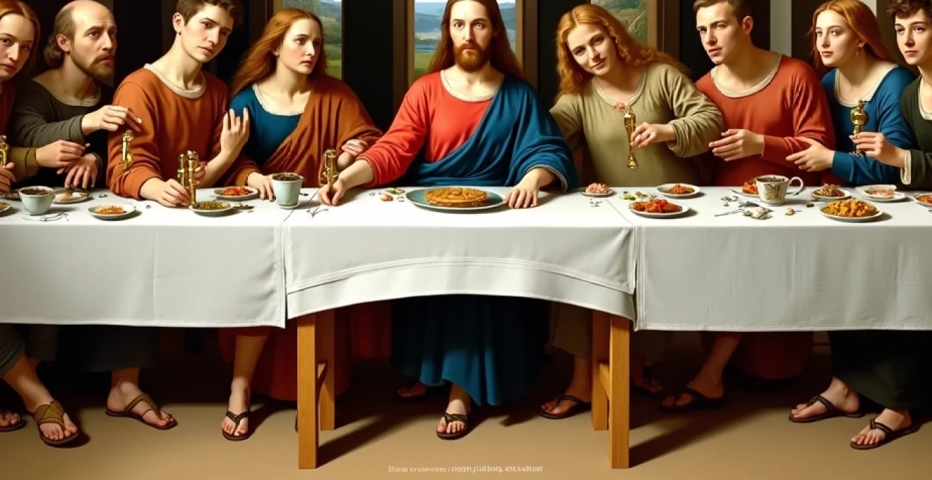 The composition is based on complex geometric relationships, with the figure of Christ at the centre forming the apex of a triangle. The apostles are arranged in groups of three, reflecting the Holy Trinity. Furthermore, some scholars have suggested that the painting contains hidden musical notations, with the positions of the bread rolls on the table corresponding to notes on a musical staff.